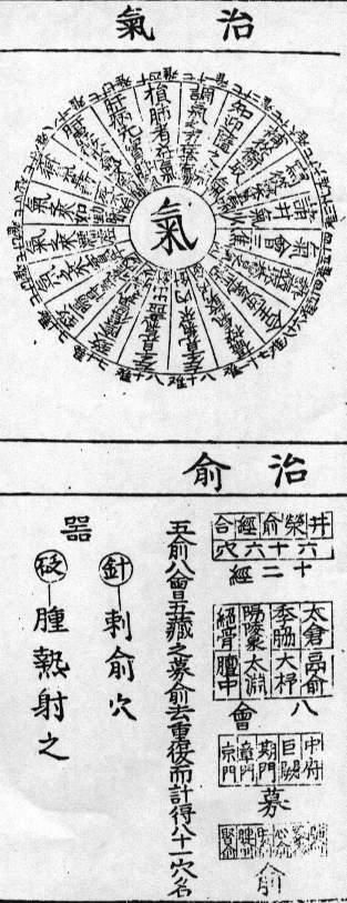 下の図では、治療穴としてたいせつなものと、治療器具について述べてあります。